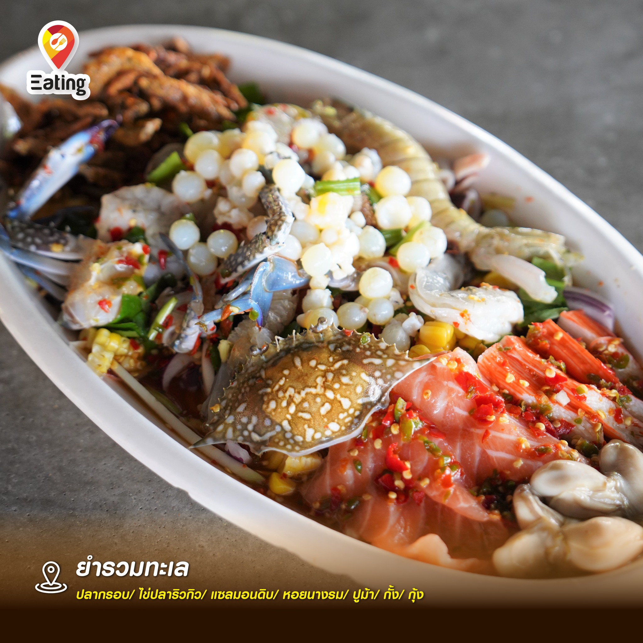 The atmosphere is great too. The restaurant is near Laem Thaen Beach in Bangsaen, with a gentle sea breeze while enjoying spicy yum — such a perfect combination. It’s ideal whether you’re coming for a proper meal or just stopping by for a chill bite after walking along the beach.